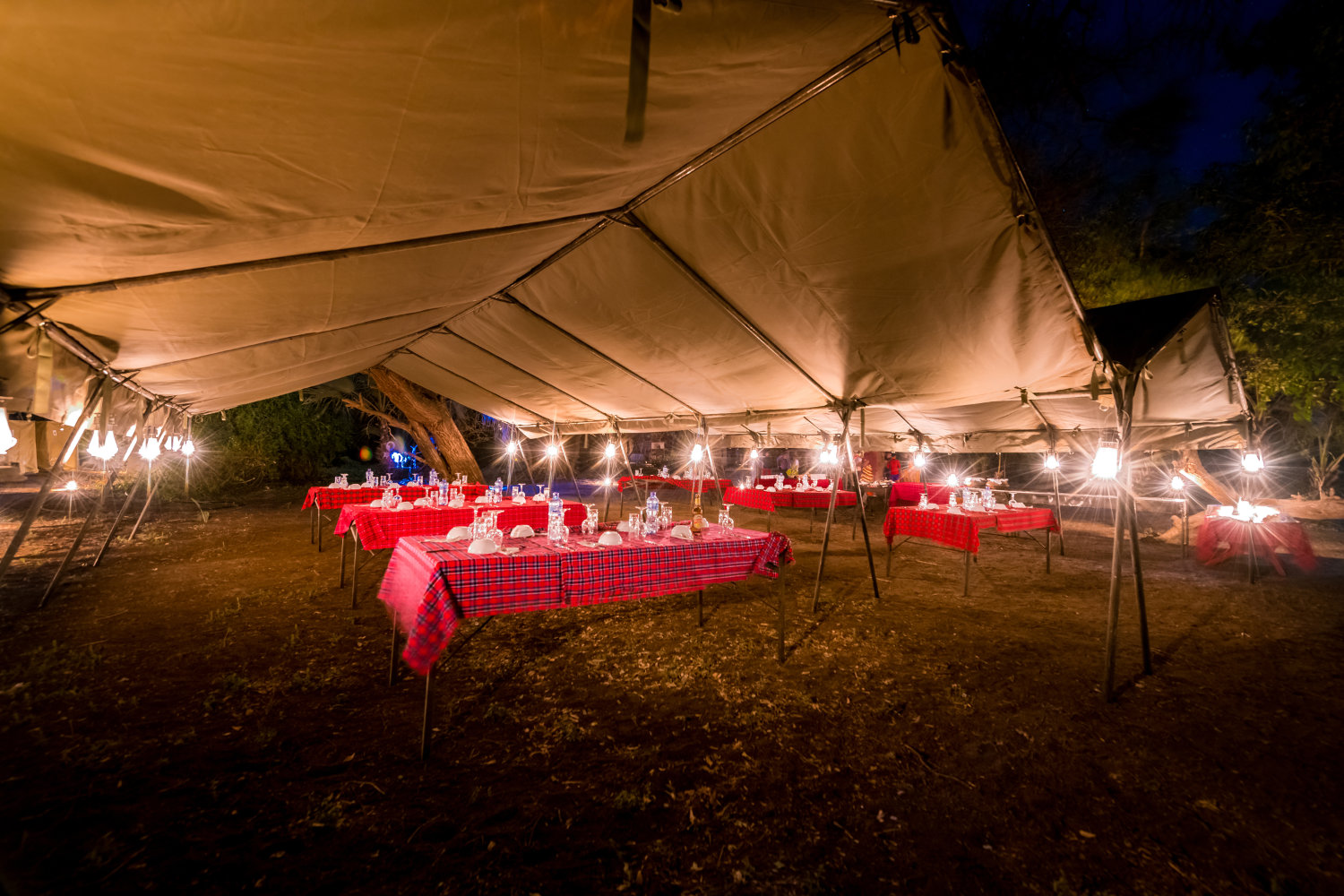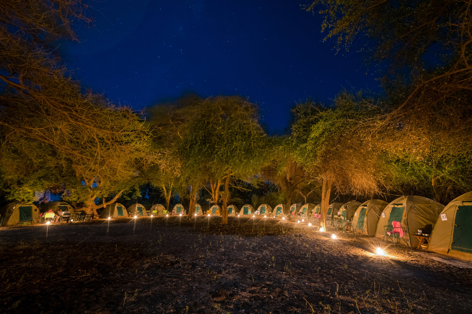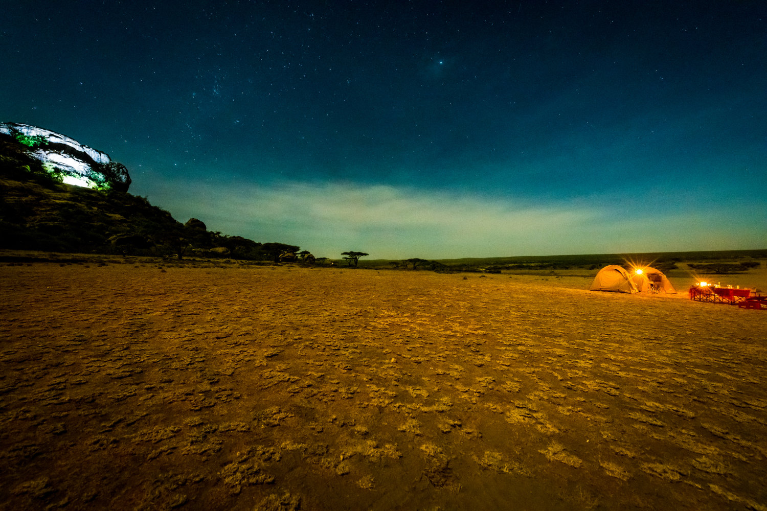Feux de camp sous les étoiles, tentes illuminées au cœur de la nuit, animaux en ombres chinoises à l’horizon : MKSC Bivouac, c’est l’Afrique telle qu’on la rêve, sans filtre.